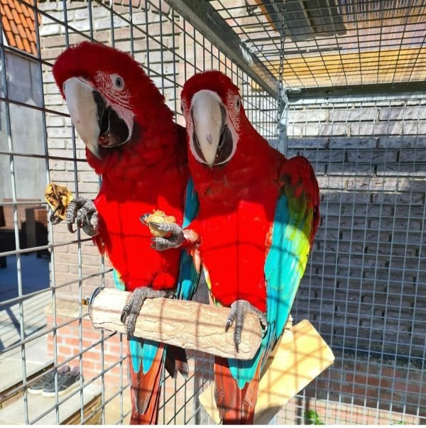 Our pair consists of a healthy, mature male and female, well-bonded and ready for breeding. With proper care, Green Winged Macaws can live for 50+ years, making them a long-term companion and a rewarding investment for any serious parrot breeder or exotic bird enthusiast.