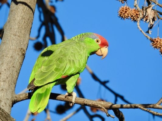 Mexican Red Headed Amazon shares many physical similarities with the rest of their family. But a few crucial details in both their looks and personality make them stand out. The adult birds reach an average length of around 13 inches (33 centimeters) and can weigh up to 10 ounces (270 grams). They likewise have a large wingspan – up to 16 inches (40 centimeters). Roomy cage and plenty of space are mandatory. These parrots are not sexually dimorphic – this means that males and females are identical.