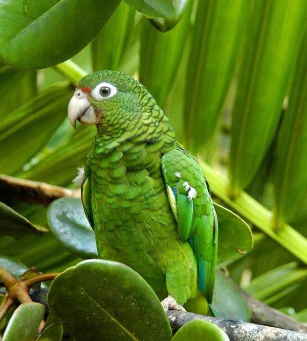The Puerto Rican amazon reaches sexual maturity at between three and four years of age. It reproduces once a year and is a cavity nester. Once the female lays eggs she will remain in the nest and continuously incubate them until hatching. The chicks are fed by both parents and will fledge 60 to 65 days after hatching. This parrot’s diet is varied and consists of flowers, fruits, leaves, bark and nectar obtained from the forest canopy.
