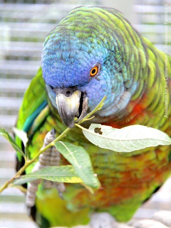 Saint Lucia Amazons are medium-sized parrots, measuring about 17 inches (43 cm) in length. Their plumage is a brilliant combination of colors, making them one of the most visually stunning parrots.