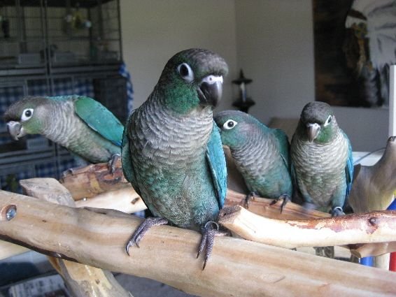Turquoise Green Cheek Conure is native to the forests of South America.